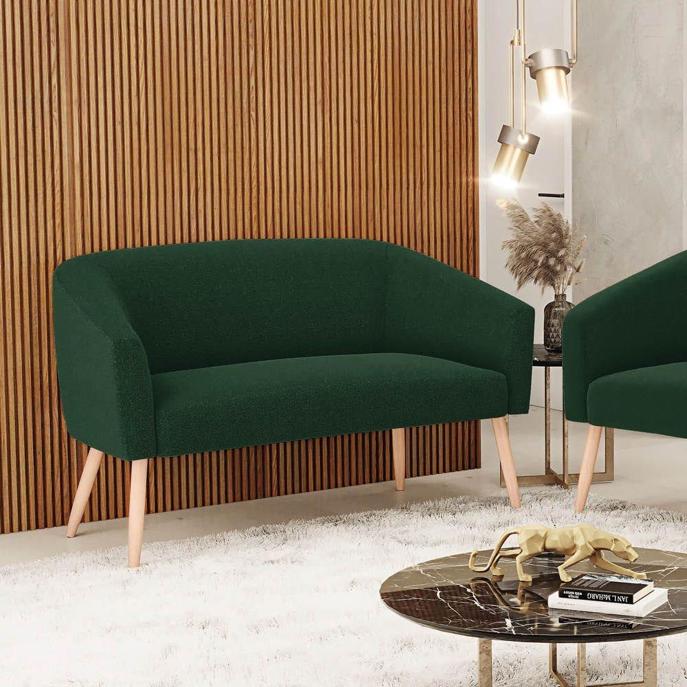 Sofá 2 Lugares Namoradeira Pé Palito Natural Stella Bouclê Verde D03 - D'rossi