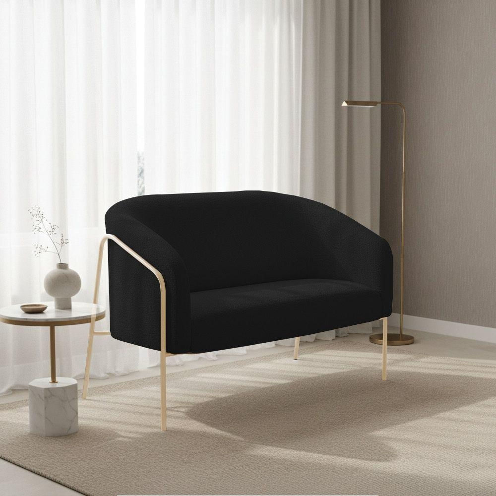 Sofá 2 Lugares Namoradeira Stella Base Industrial Alta Champanhe Bouclê D03 - D'rossi Cor Preto