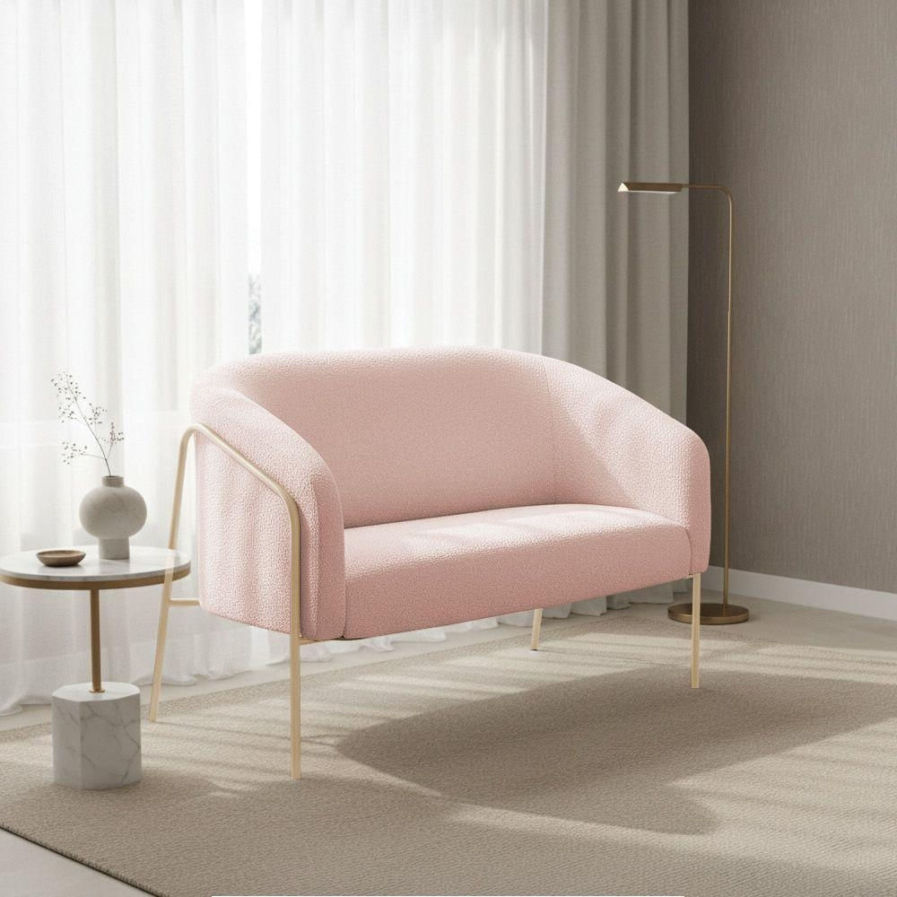 Sofá 2 Lugares Namoradeira Stella Base Industrial Alta Champanhe Bouclê Rosê D03 - D'rossi