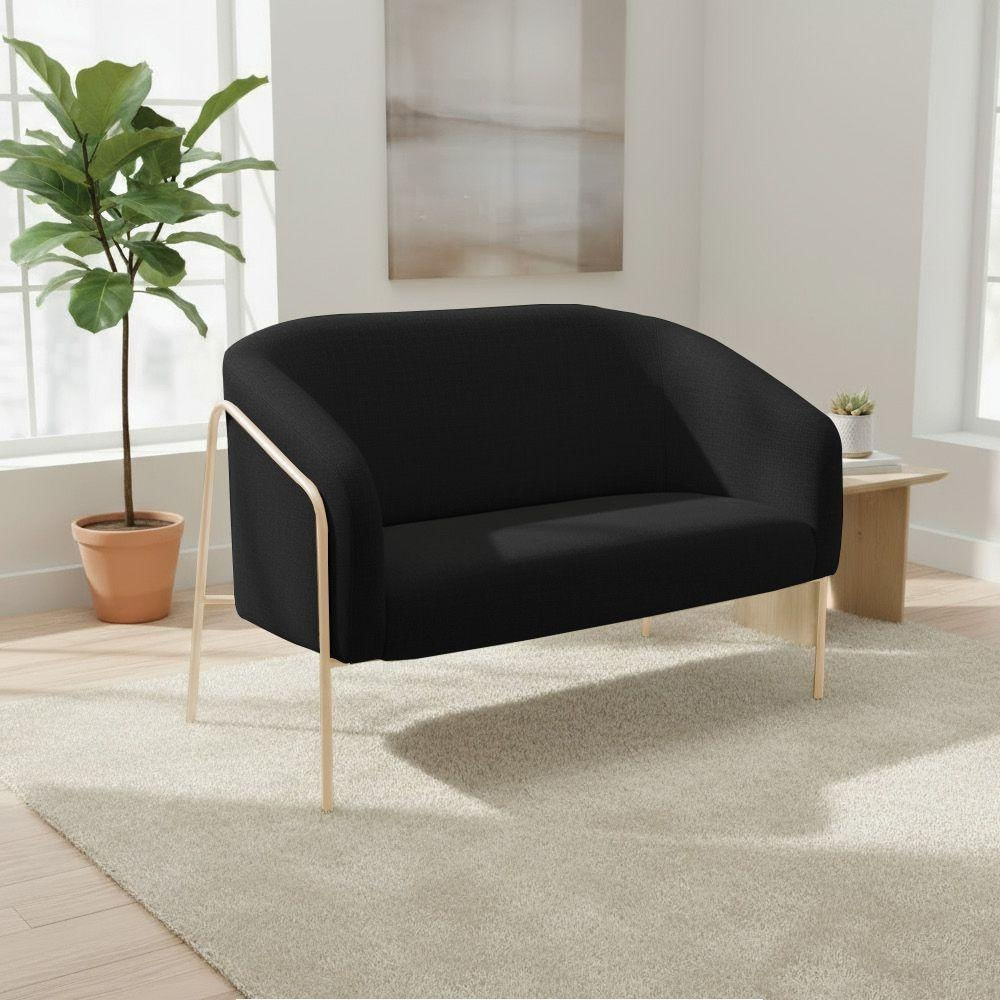 Sofá 2 Lugares Namoradeira Stella Base Industrial Alta Champanhe Linho D03 - D'rossi Cor Preto