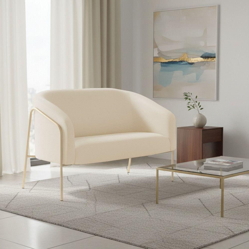 Sofá 2 Lugares Namoradeira Stella Base Industrial Alta Champanhe Sintético Pu D03 - D'rossi Bege