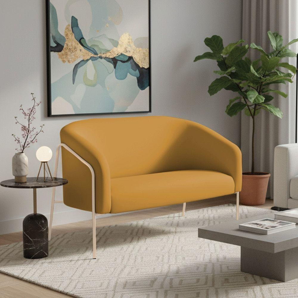 Sofá 2 Lugares Namoradeira Stella Base Industrial Alta Champanhe Veludo Mostarda D03 - D'rossi