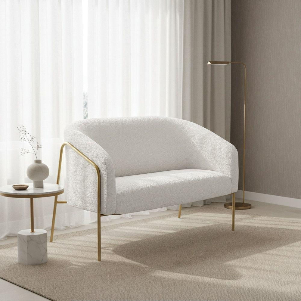 Sofá 2 Lugares Namoradeira Stella Base Industrial Alta Dourada Bouclê Cinza D03 - D'rossi