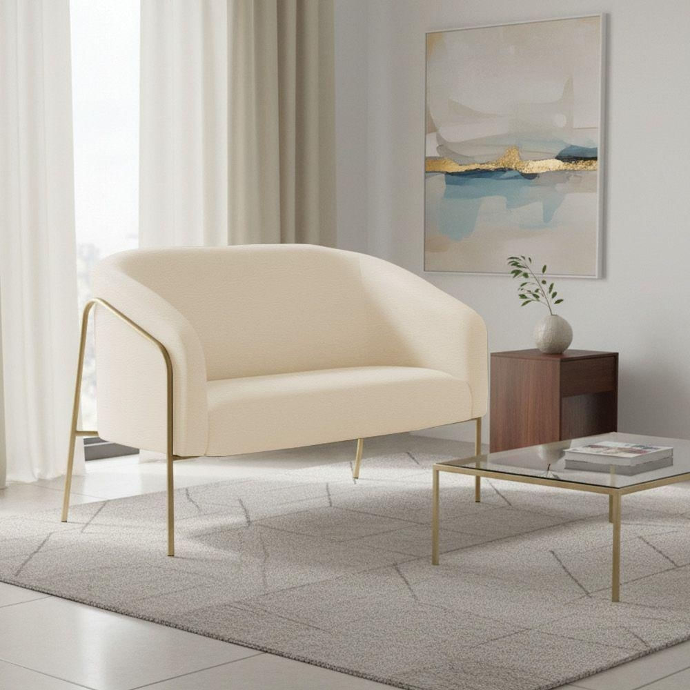 Sofá 2 Lugares Namoradeira Stella Base Industrial Alta Dourada Sintético Pu Bege D03 - D'rossi
