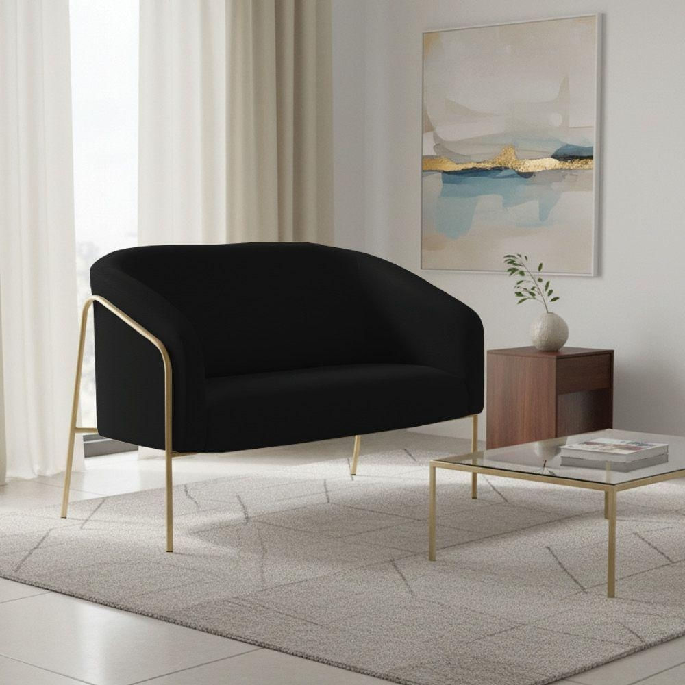 Sofá 2 Lugares Namoradeira Stella Base Industrial Alta Dourada Sintético Pu Preto D03 - D'rossi
