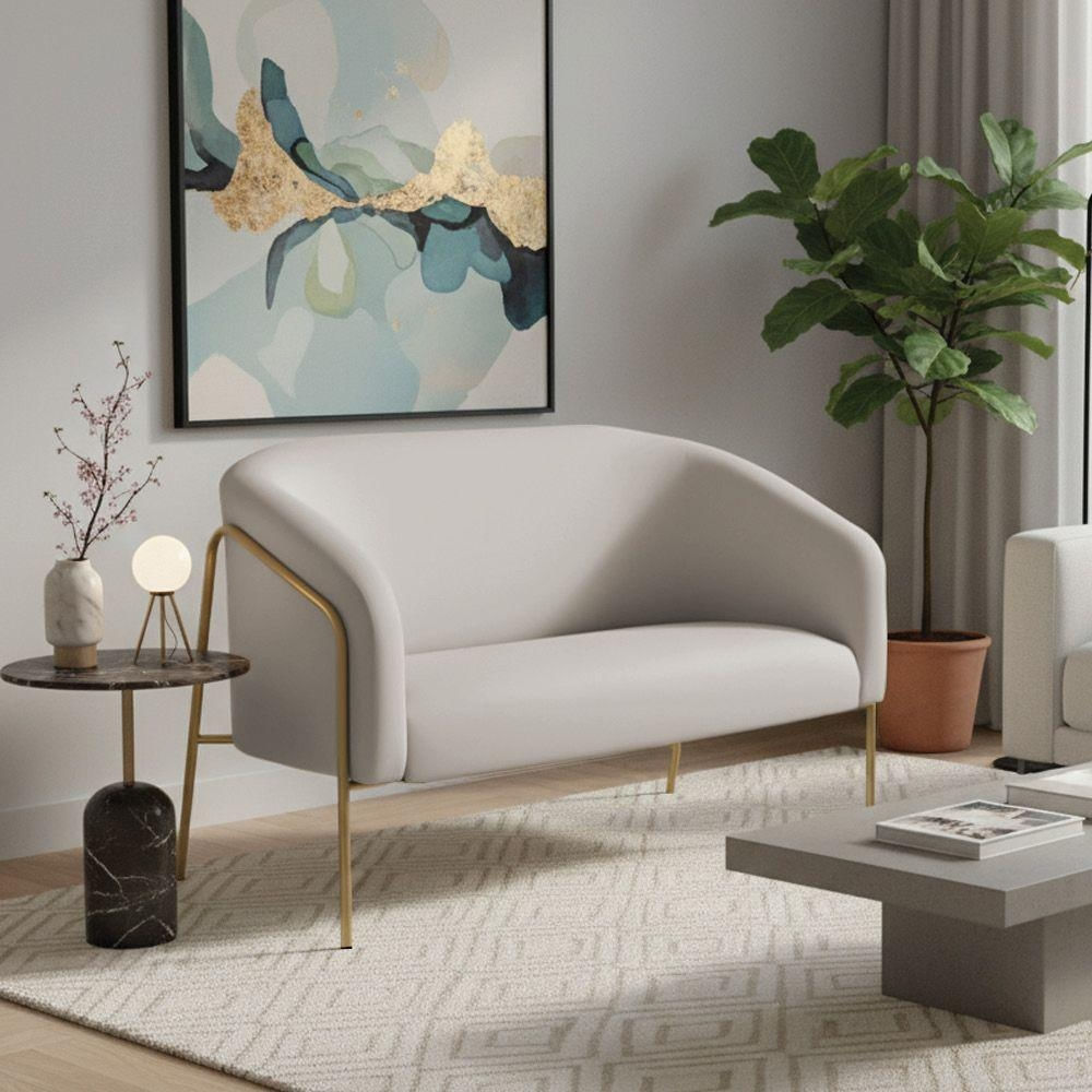 Sofá 2 Lugares Namoradeira Stella Base Industrial Alta Dourada Veludo D03 - D'rossi Cor Cinza