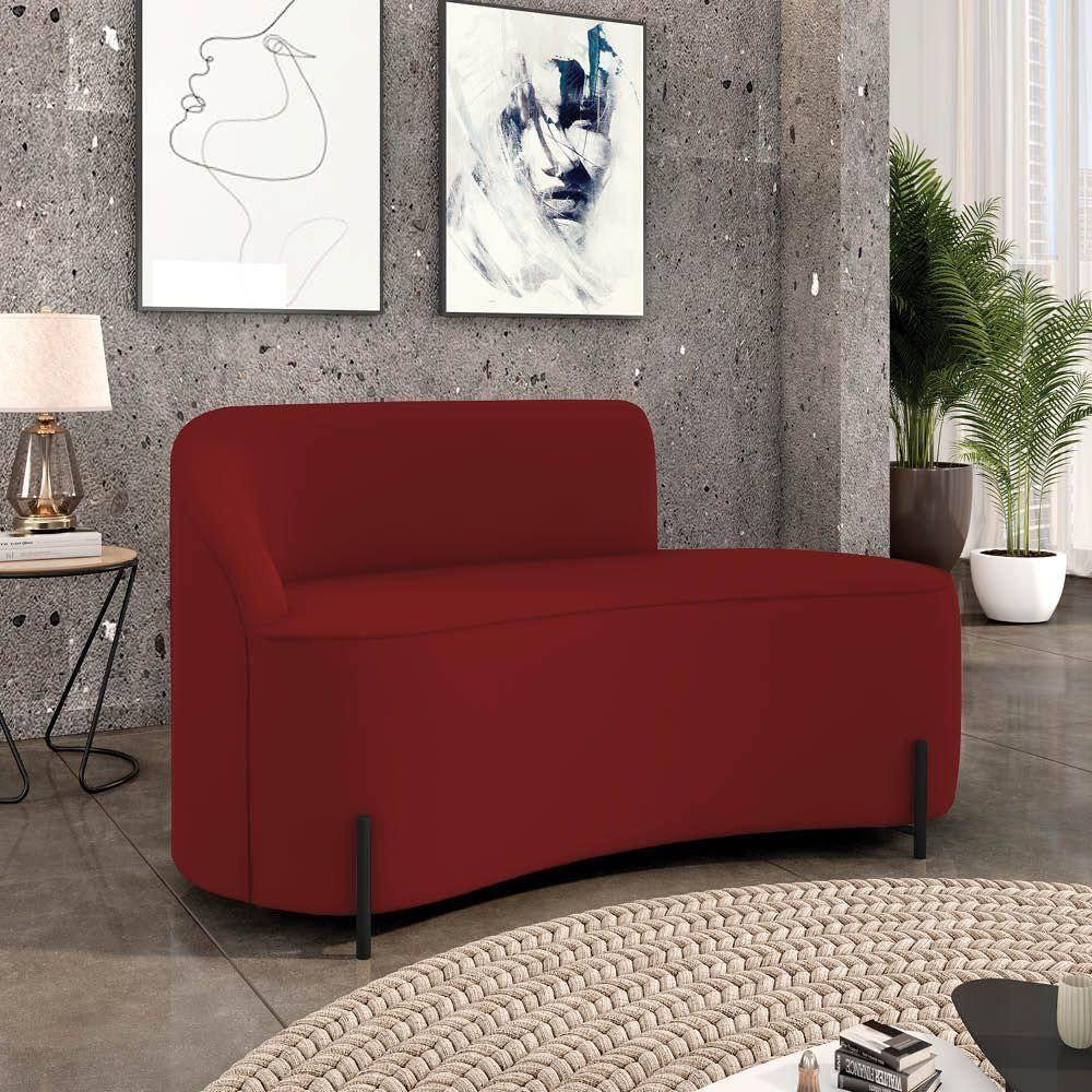Sofá 2 Lugares Orgânico 140cm Pé Ferro Preto Morgan Veludo Marsala