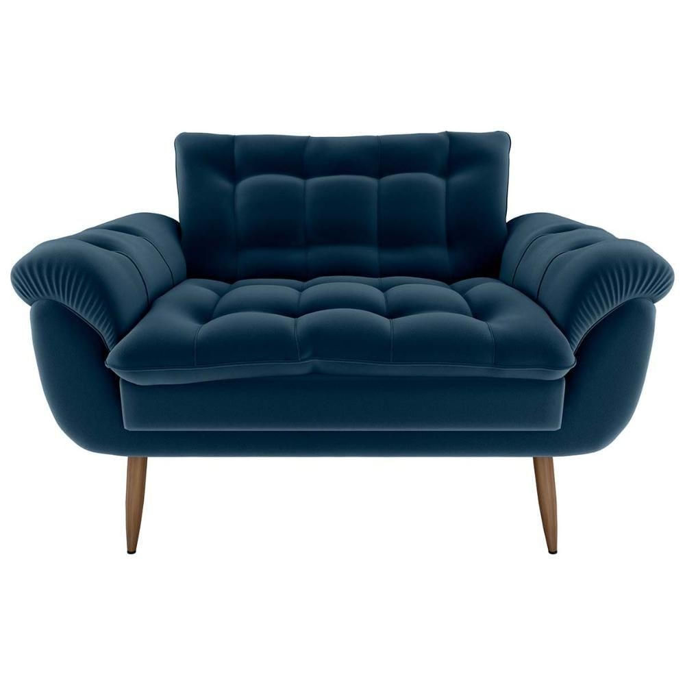 Sofá 2 Lugares Pequeno 1,25 Pés Em Madeira Maciça Xangai Veludo Azul Matrix Veludo Azul