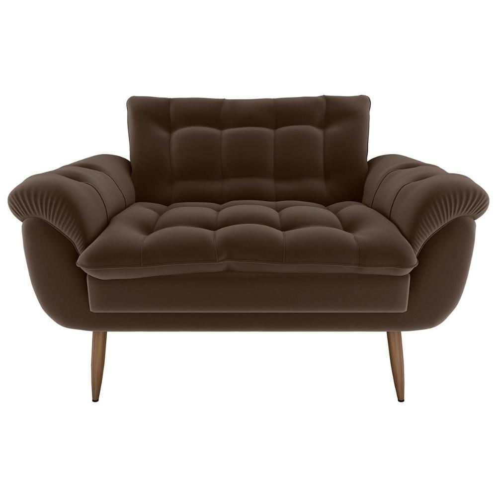 Sofá 2 Lugares Pequeno 1,25 Pés Em Madeira Maciça Xangai Veludo Marrom Matrix Veludo Marrom