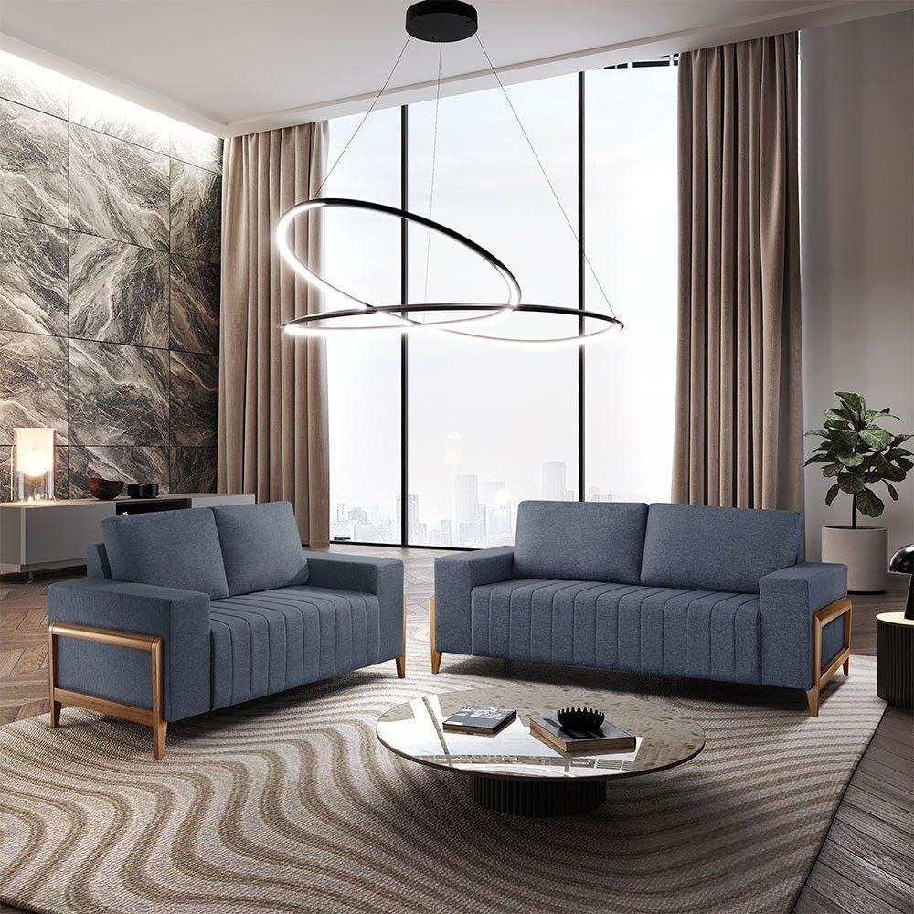 Sofá 2x3 Lugares Verona Meu Sofá Online A259 Linho Azul