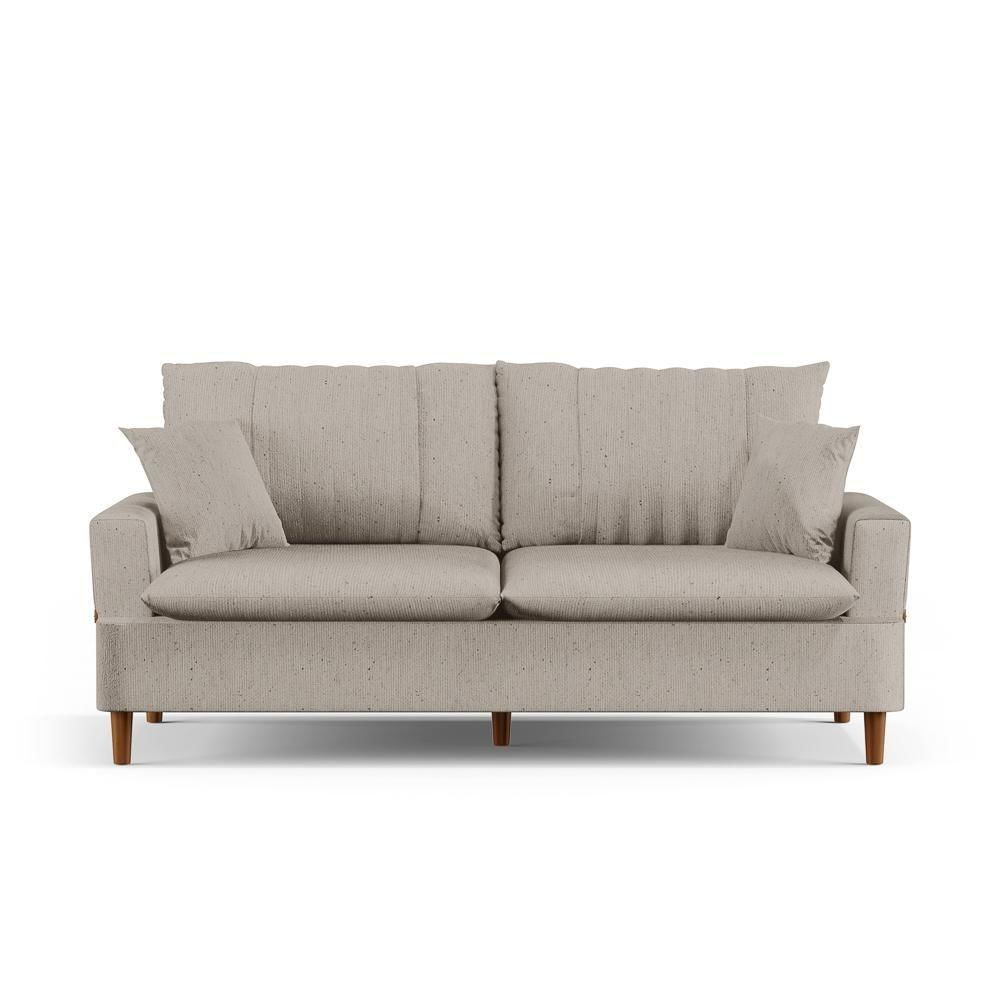 Características do Produto Material da Estrutura: Madeira de eucalipto. Material da Espuma: Assento espuma HR 26+plumante / Encosto fibra siliconada e espuma. Peso Suportado: 110 Kg por assento. Revestimento: Tecido Linho. Tipo de Encosto: Fixo. Tipo de Assento: Fixo. Quantidade de Lugares: 3 Lugares. Possui Pés: Sim. Quantidade de pés: 5 pés. Material dos Pés: Madeira Eucalipto. Possui Rodízios: Não. Diferenciais: - Design moderno. - Acompanha almofadas. Sistema de : O produto é enviado montado. Manual de : Não Conteúdo da Embalagem: 1 Sofá. Volumes: 1 Volume. Garantia do Fabricante: 90 dias contra defeito de fabricação. : Recomendamos que seja feita por um profissional. Recomendação de Limpeza: Utilize pano levemente úmido.