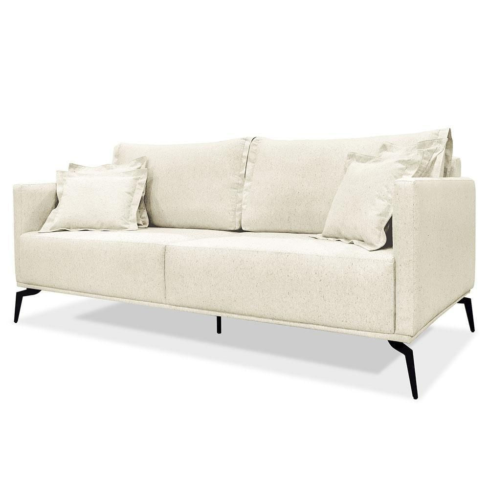 Sofá 3 Lugares 200cm Pés De Metal Vecchia S06 Linho Natural - Mpozenato