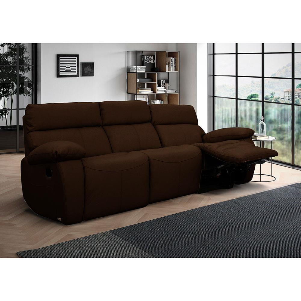 Sofá 3 Lugares Atlanta com Assento Retrátil e Reclinável em Couro 243 cm largura Mobler Mogno