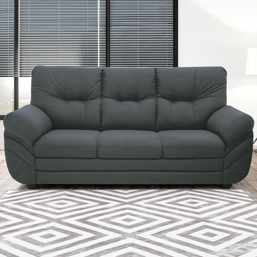 Sofá 3 Lugares Francis com Almofadas Fixas e Revestimento em Suede Linoforte Grafite