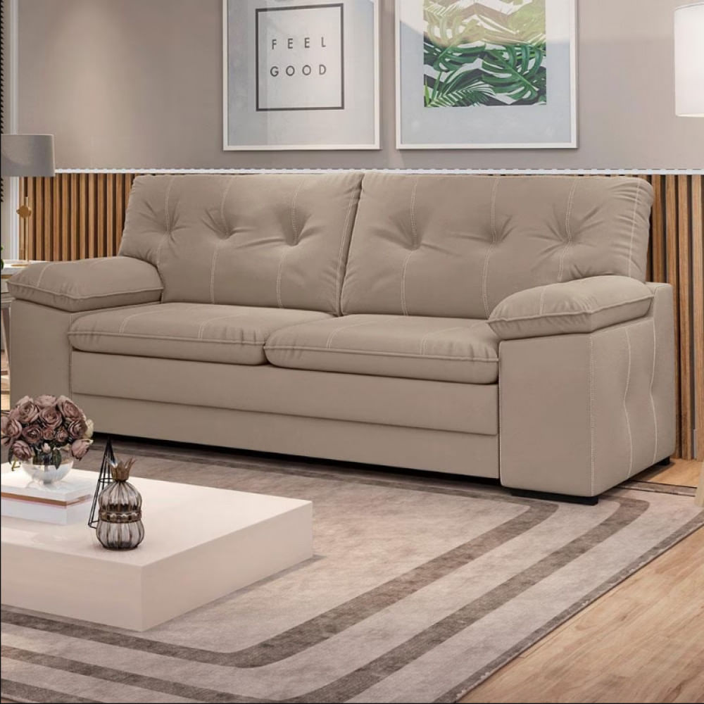 Sofá 3 Lugares Genova com 217cm de Largura e Revestido em Suede Veludo Besthouse Capuccino