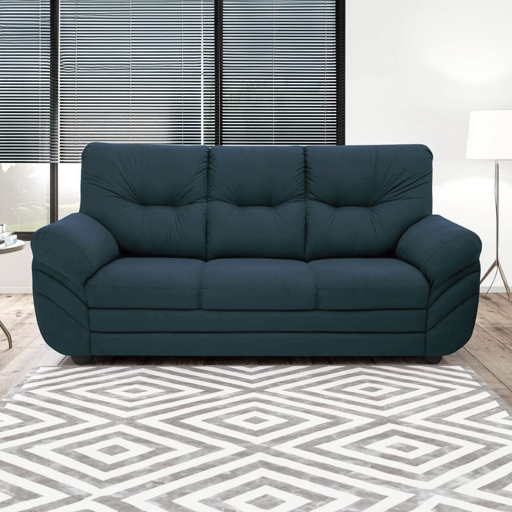 Sofá 3 Lugares Linoforte Francis com Almofadas Fixas e Revestimento em Suede Azul Petróleo