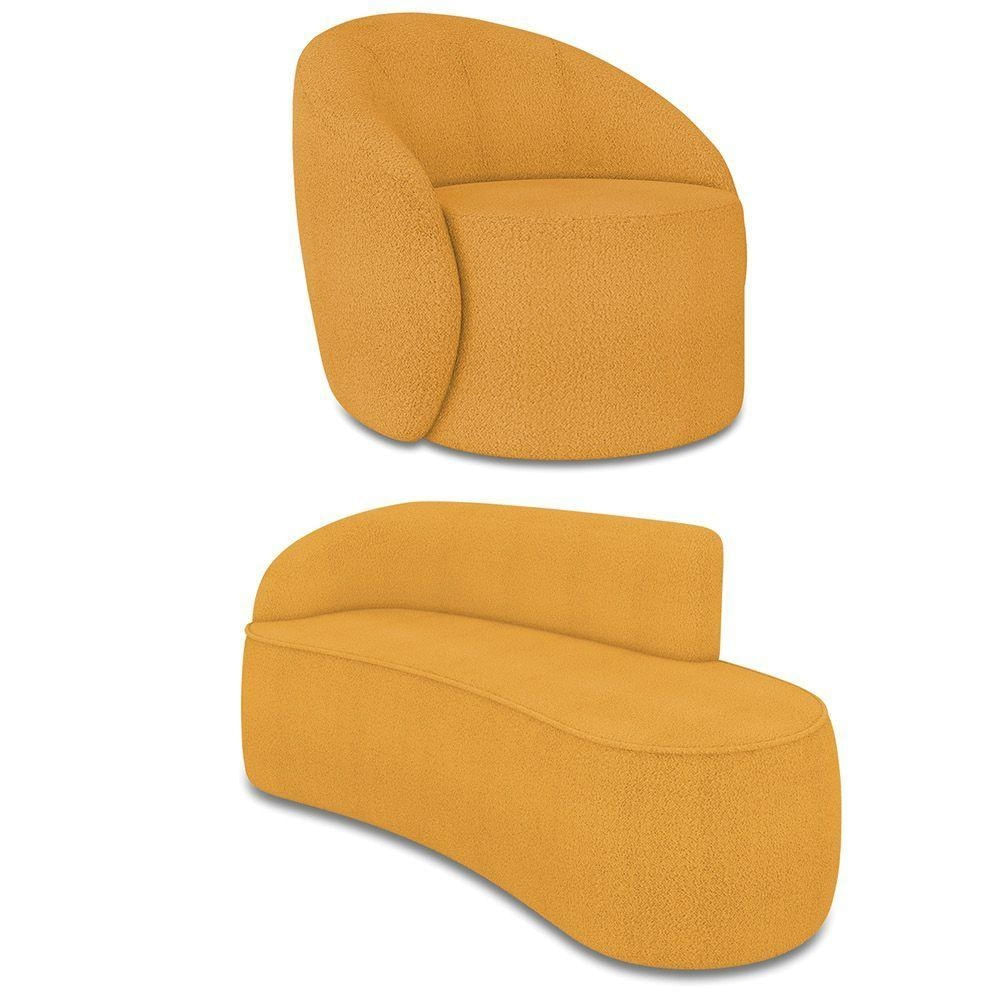 Sofá 3 Lugares Orgânico 180cm Morgan E Poltrona Lua Bouclê Mostarda D03 - D'rossi