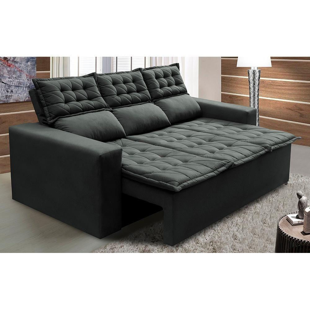 Sofá 3 Lugares Retrátil E Reclinável Cama Inbox Slim 2,00m Velusoft Cinza