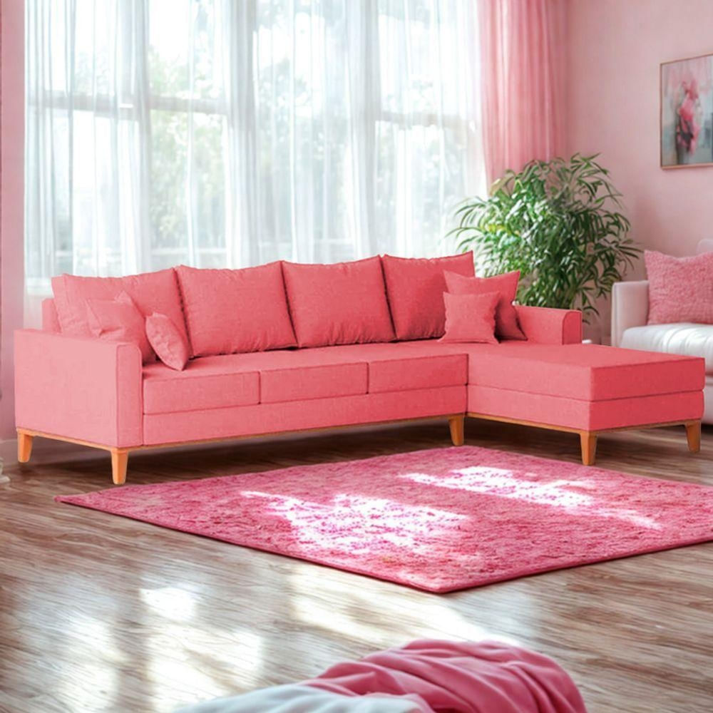 Estrutura: Madeira Eucalipto Espuma: D26 Tipo de pés: Pés Trapézio Peso Suportado cada Assento: 120kg Garantia: 90 dias contra de fabricação Montagem: O produto vai montado, apenas rosquear os pés e encaixar a Chaise no Sofá na peça lateral. Instruções de Limpeza: Utilizar um pano úmido com sabão neutro.Itens Inclusos: 4 Almofadas de Encosto (soltas), 2 Almofadas Médias e 2 Almofadas pequenas Você irá receber: 01 Sofá e 01 Chaise em 02 volumesOBSERVAÇÕES IMPORTANTES: