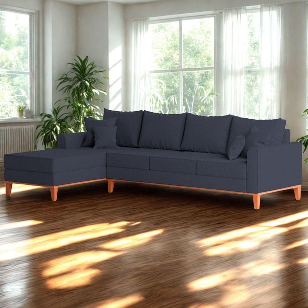 Sofá 4 Lugares Beny Com Chaise Esquerdo Suede Azul
