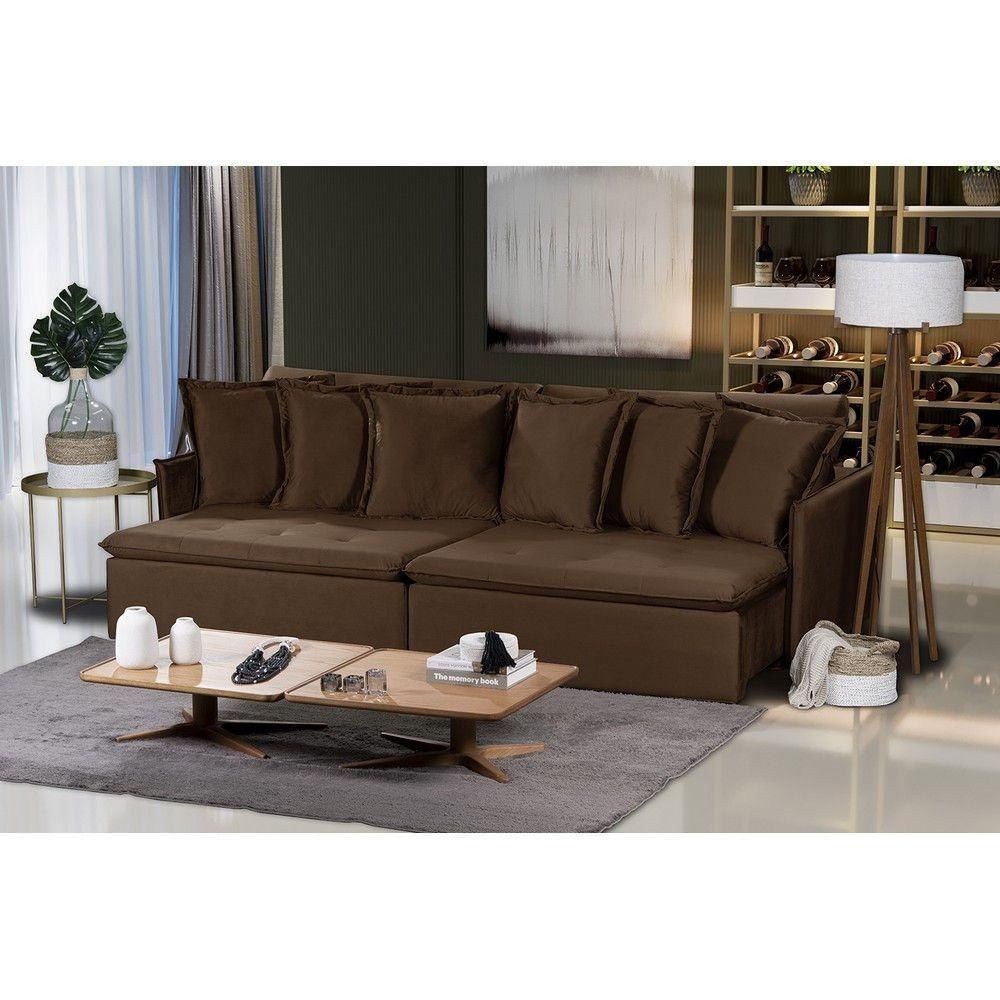 Sofá Modular Olinda 4 Lugares 2.30 Mt Com Molas Retrátil E Reclinável Veludo Nobre Sofatec Marrom