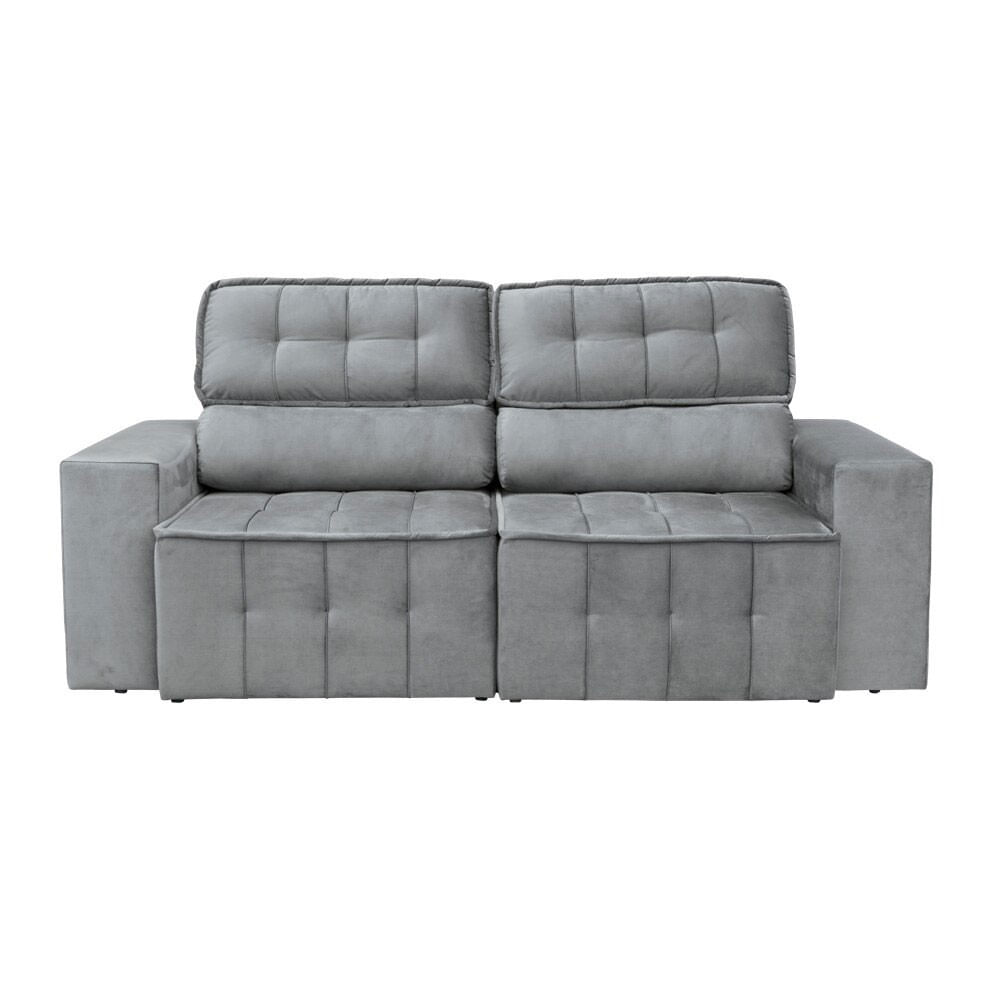 Sofá 4 Lugares Falconi com Assento Retrátil e Encosto Reclinável 219 cm Luizzi Cinza