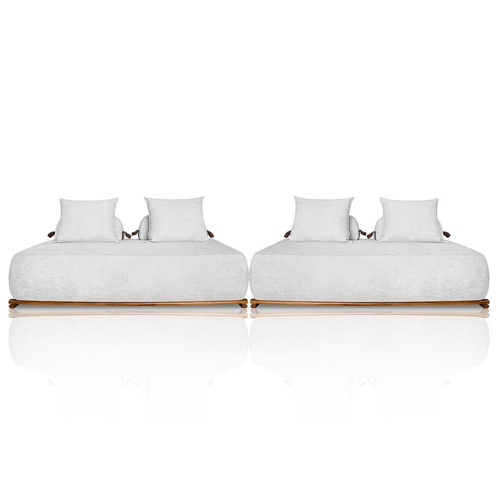 Sofá 6 Lugares Ilha 2 Módulos 200cm Viero S06 Boucle Branco - Mpozenato