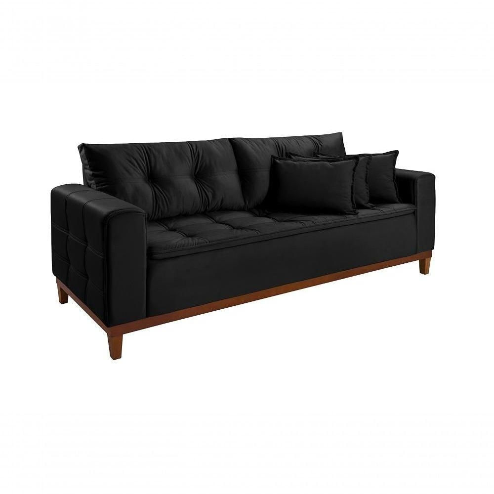 Sofá Atenas 2,00m 3 Lugares Império Estofados Veludo Preto 176