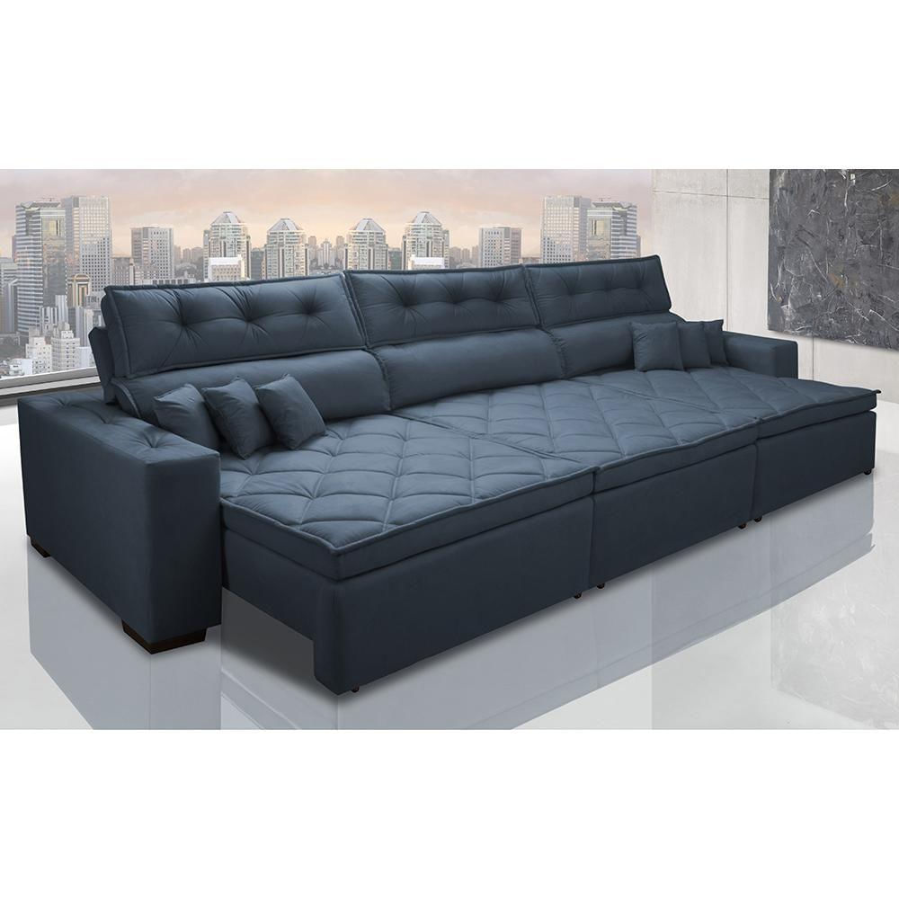 Sofá Austin 3,22m Retrátil, Reclinável Com Molas No Assento E Almofadas, Suede Azul Cama Inbox