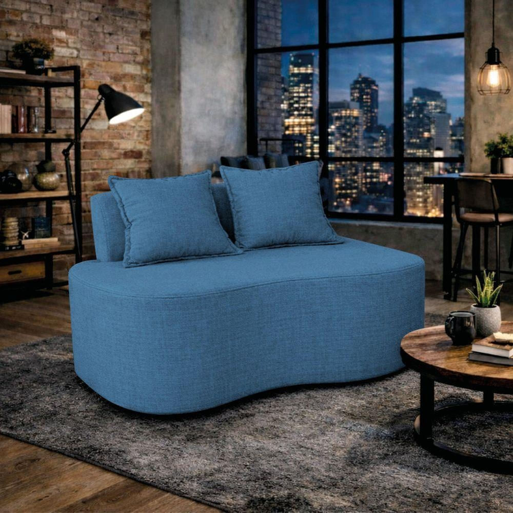 Sofá Bellé 100cm Moderno Confortável Sala Estar Luxo Linho Azul Royal