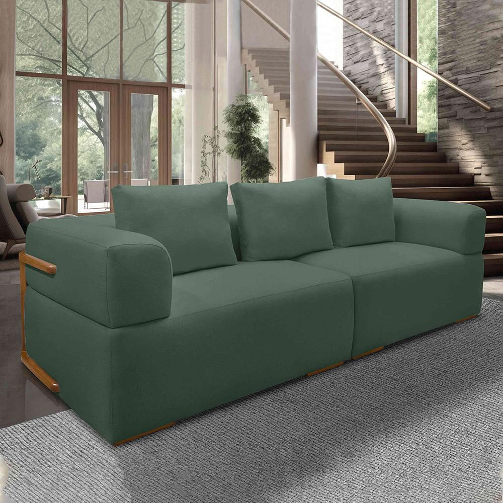 Sofá Bipartido 4 Lugares com Almofadas Soltas 260cm Nuuk Linho Verde G63 - Gran Belo