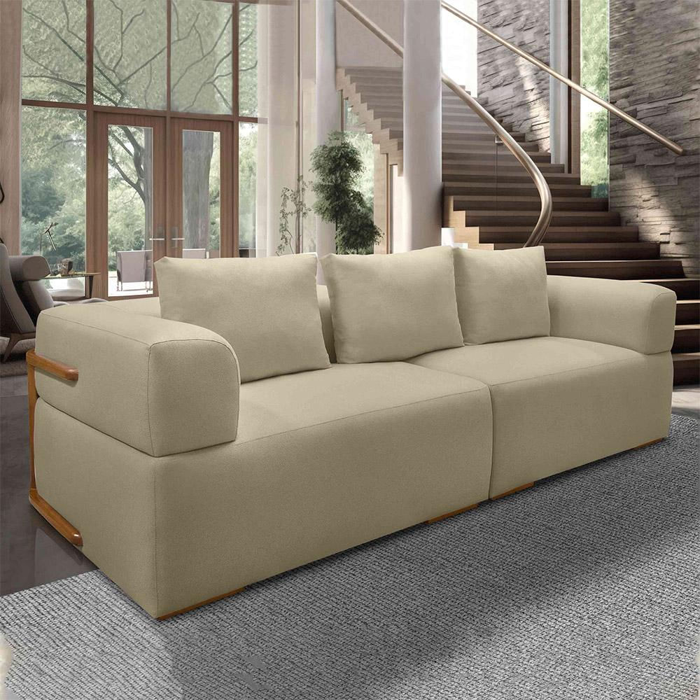 Sofá Bipartido 4 Lugares com Almofadas Soltas 280cm Nuuk Linho Bege G63 - Gran Belo
