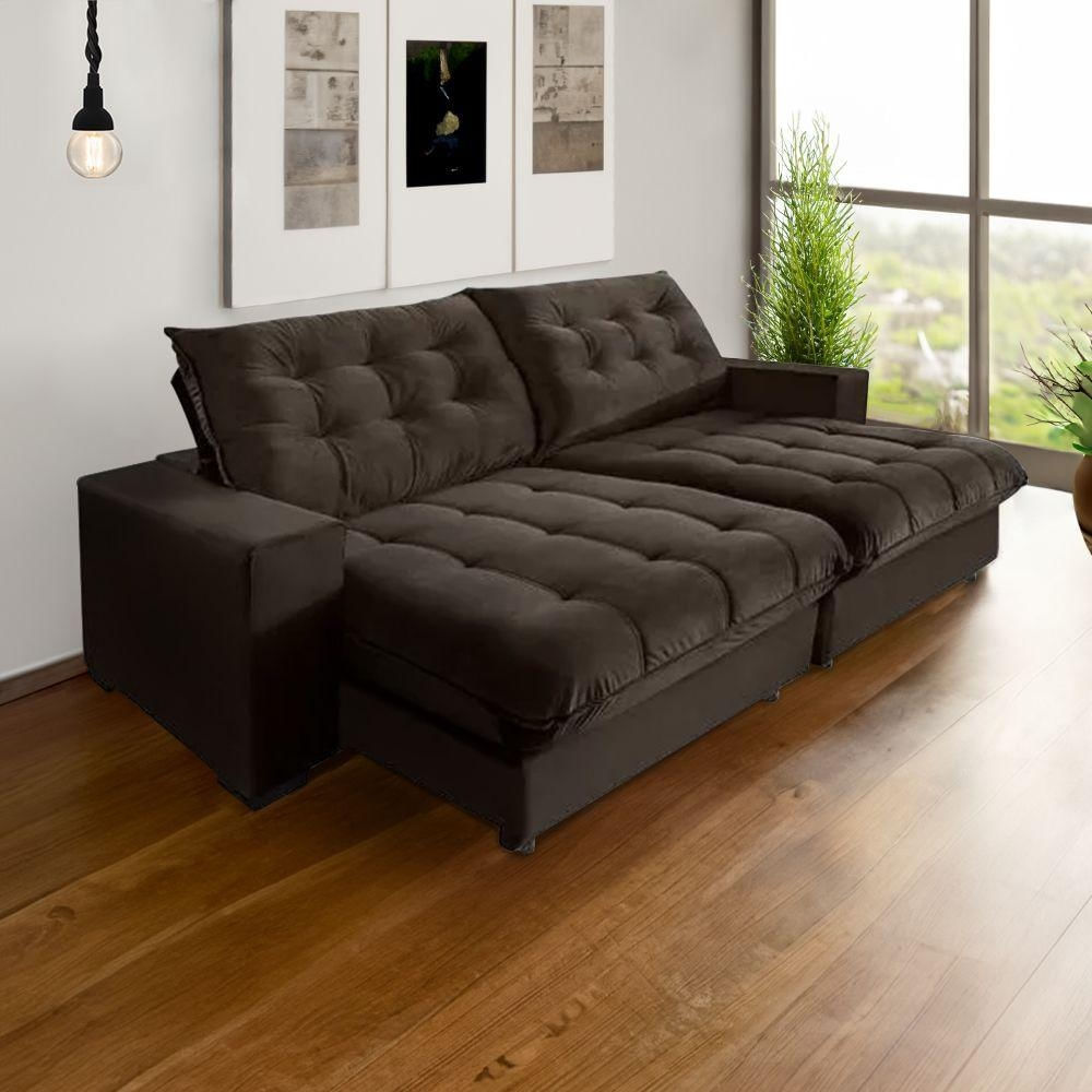 Sofá Califórnia Retrátil E Reclinável 5 Lugares 2,70m Com Molas Ensacadas E Pillow Marrom