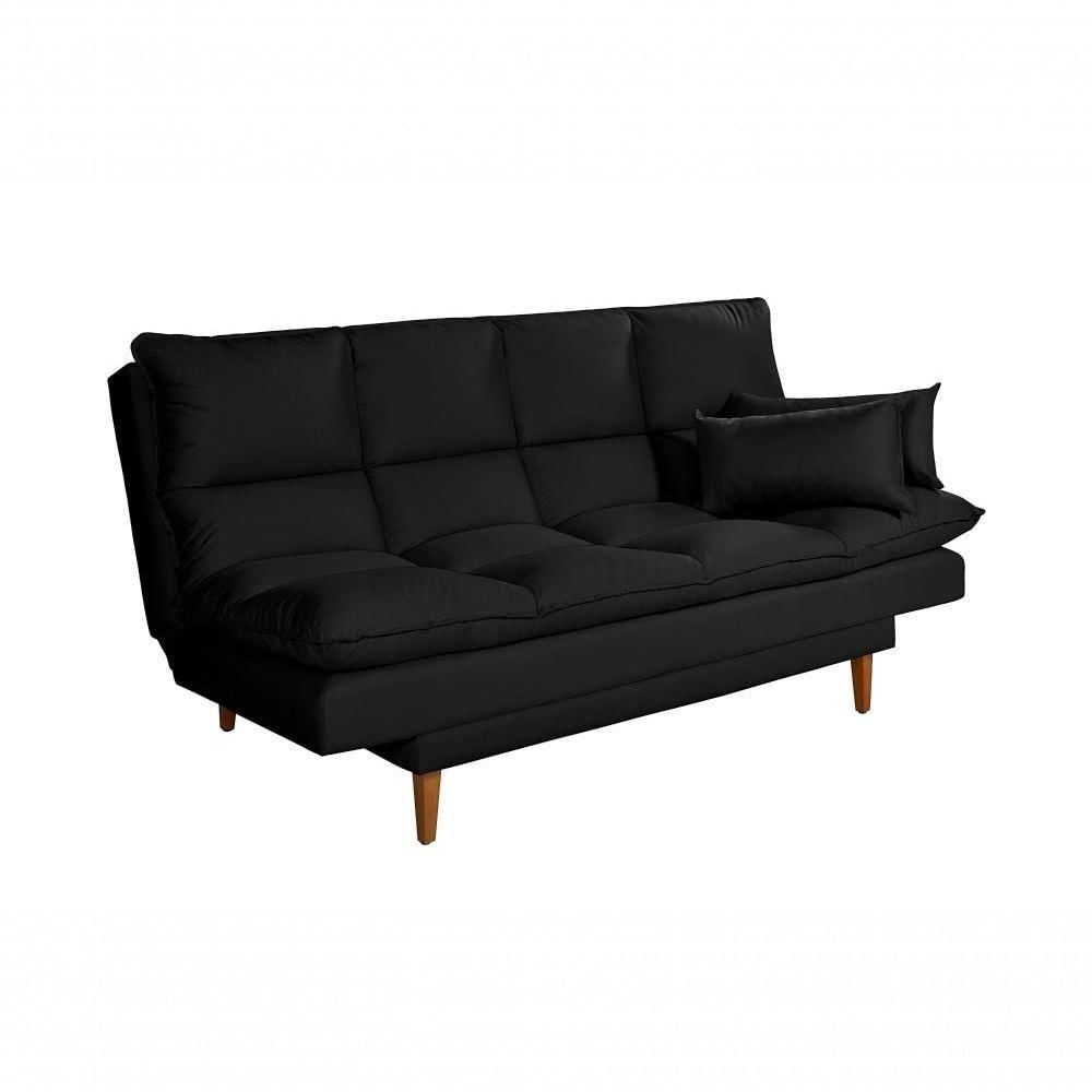 Sofá Cama Andorra 3 Lugares Império Reclinável Casal Pés Madeira Com Banqueta Suede Preto 381