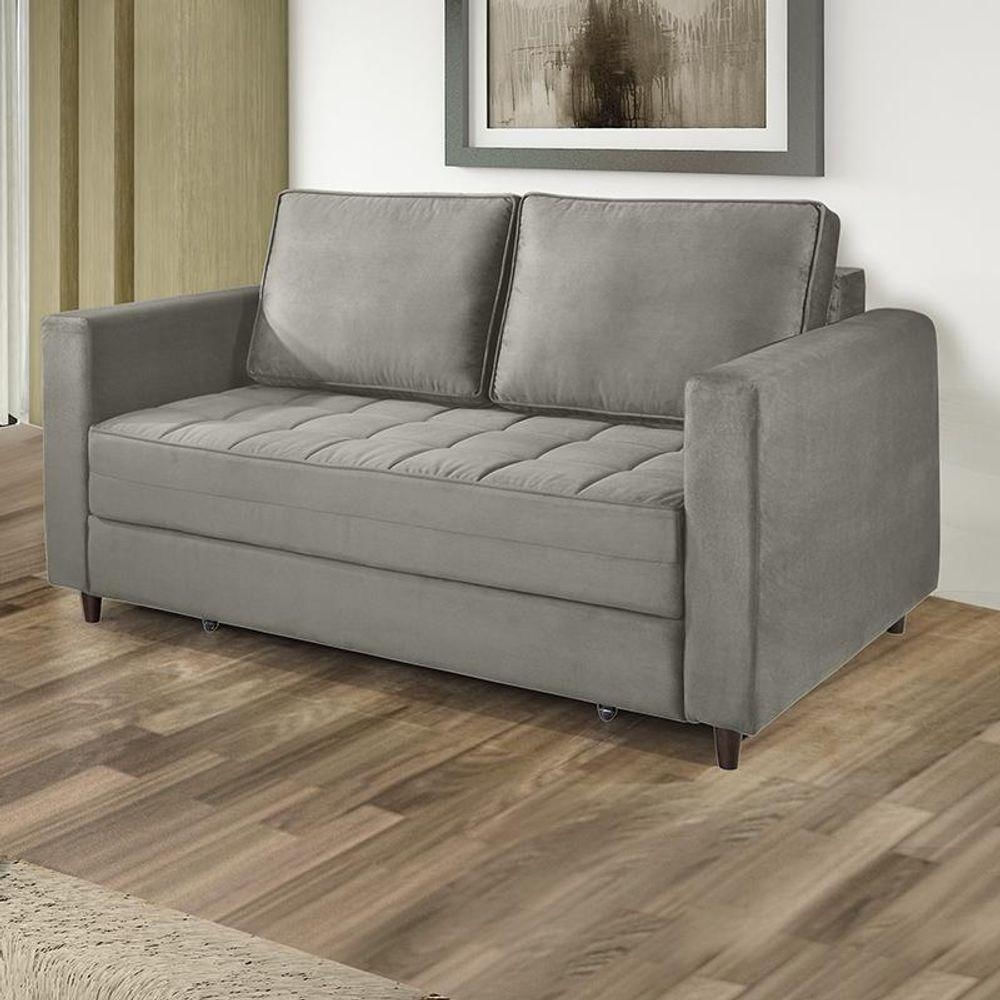 Sofá Cama Belize 2 Lugares Com Pés De Madeira E Rodízios Cinza Cinza