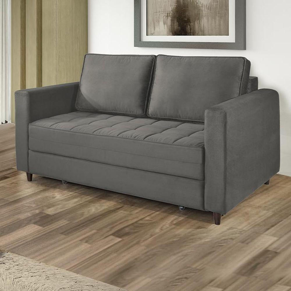 Sofá Cama Belize 2 Lugares Com Pés De Madeira E Rodízios Grafite Grafite