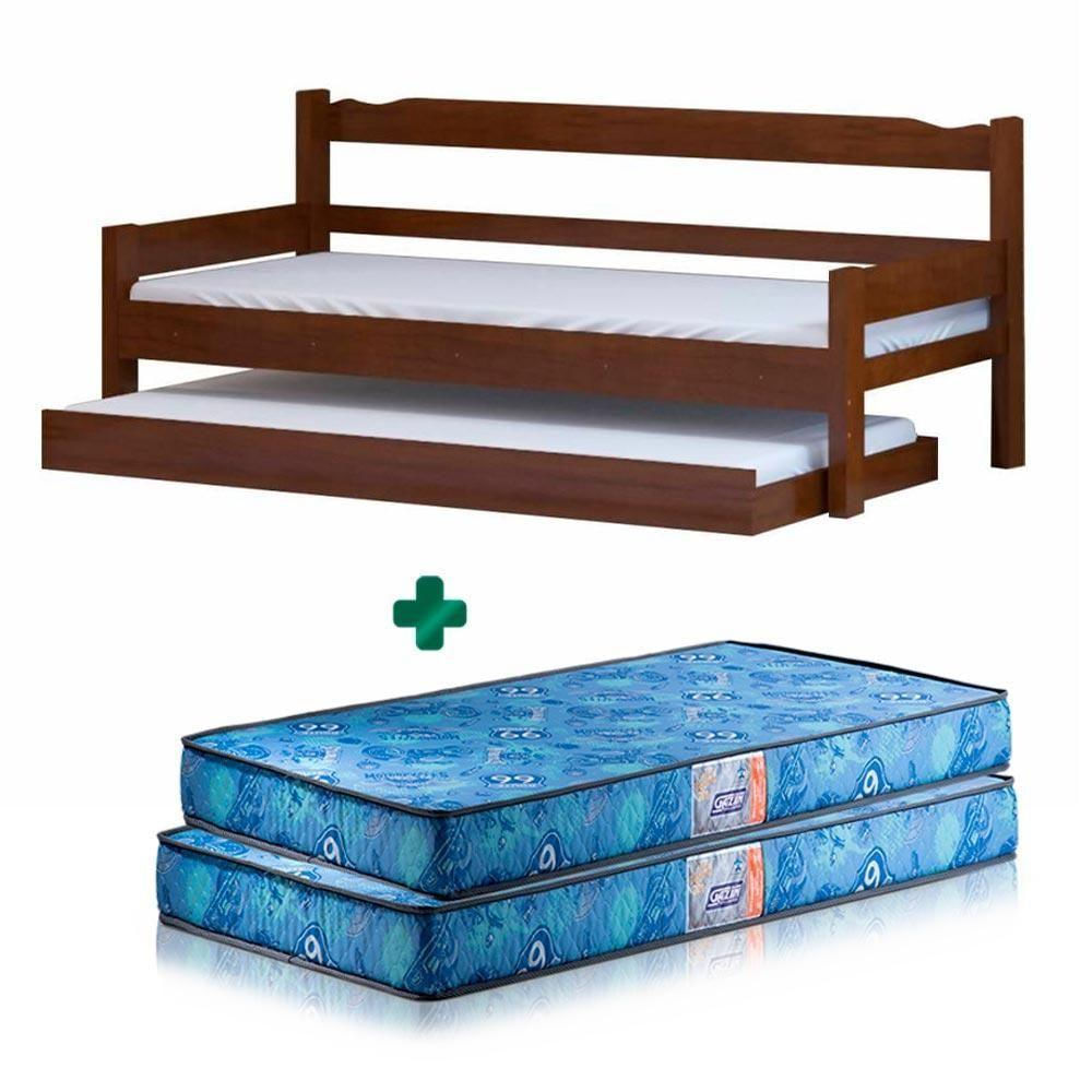 Sofá Cama Com Cama Auxiliar Solteiro Madeira Maciça Esmeralda Nemargi Castanho Com 2 Colchões Gazin