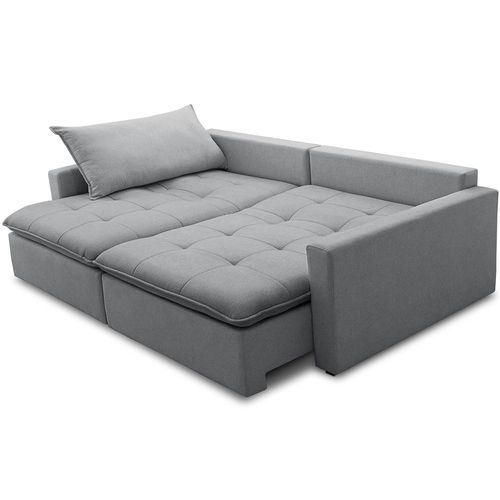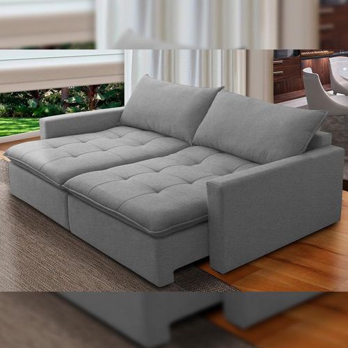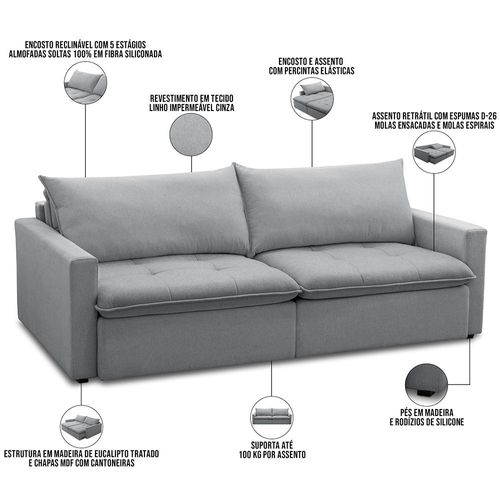 Sofá Cama Retrátil Reclinável Para Sala de Estar 208cm Lari F04 Linho Cinza - Lyam Decor