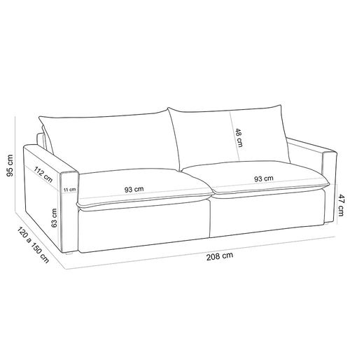 O Sofá Cama 3 Lugares Sala de Estar Living Lari é o complemento perfeito para o seu ambiente. Com design elegante e funcional, ele oferece conforto e estilo incomparáveis. A estrutura fabricada com madeira de eucalipto e MDF garante que este seja um sofá durável e resistente. Já o sistema retrátil permite ajustar facilmente a posição para atender às suas necessidades de relaxamento, seja para assistir um filme, ler um livro ou até mesmo para acomodar as visitas, uma vez que é um sofá cama casal com amplo espaço que garante o máximo de bem-estar. Para completar, o revestimento em linho impermeável evita que sujeiras e, assim, fica com aparência de novo por muito mais tempo. Com o esse sofá cama retrátil, você não está apenas adicionando um estofado de alta qualidade à sua sala de estar, mas também uma peça que traz praticidade e beleza ao ambiente. Aproveite esse encontro perfeito entre estilo e conforto! Dimensões do produto (L x A x P) 208 cm x 95 cm x 120 cm Medidas internas: Altura do encosto: 48 cm Altura do assento ao chão: 47 cm Largura do assento: 93 cm cada Altura do pillow: 15 cm Braças (L x A x P): 11 x 63 x 112 cm Peso aproximado: 65 kg Características: Estrutura fabricada com madeira de eucalipto tratado e chapas MDF com cantoneiras. Revestimento em tecido Linho Impermeável na cor Cinza. Percintas elásticas no encosto e assento. Encosto reclinável com 5 estágios e almofadas soltas 100% em fibra siliconada. Assento com espumas D-26, molas ensacadas e molas espirais. Acabamento com costura rebatida, garantindo maior resistência a abertura de costuras. Pés em Madeira e rodízios de silicone. Modelo de 2 assentos e comporta até 3 lugares. Suporta até 100 kg por assento. - Por se tratar de estofado as medidas podem ter uma pequena variação de até 3 cm. - A tonalidade do produto real poderá ter ligeira variação devido o lote de tecidos. Observações importantes: - A montagem será de responsabilidade do comprador. - Responsabilizamo-nos pela entrega em todo território nacional, até onde as rodovias alcançam, entregas fluviais ou aéreas devem ser cotadas a parte. - As imagens são ilustrativas, não acompanham objetos de decoração e eletrônicos. - Não nos responsabilizamos, no ato da entrega, por subir escadas/elevadores ou transporte por guincho em apartamentos. - Eventuais despesas são de responsabilidade do comprador. - Confira as dimensões do produto e certifique-se de que passará normalmente por supostos elevadores, portas, escadas e/ou corredores de sua residência.