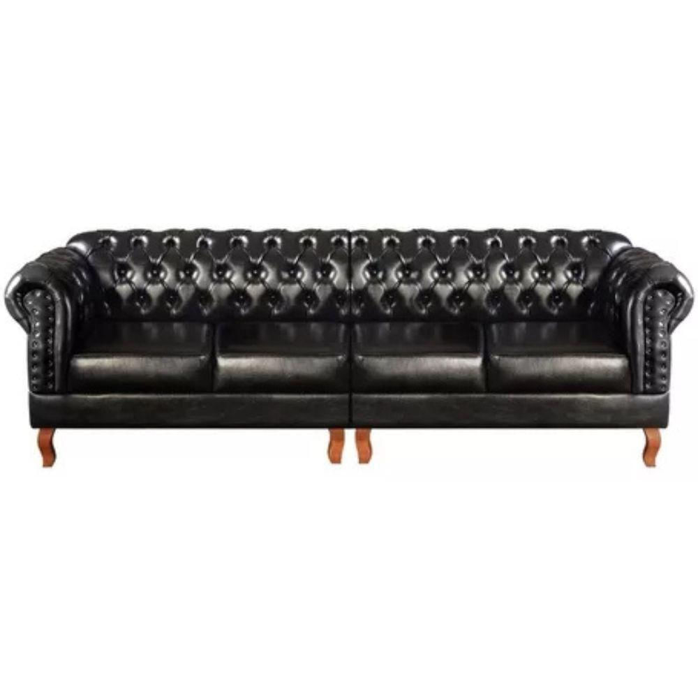 Sofá Chesterfield 4 Lugares Dom Pedro Vintage Retrô Capitonê Couro Preto