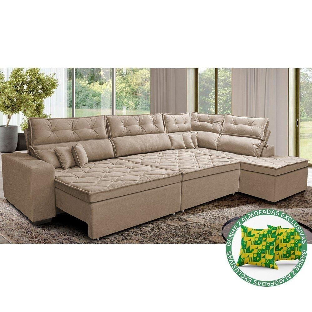 Sofá De Canto Retrátil E Reclinável Direito 3,00x2,36m Molas Cama Inbox Espanha Velusoft Bege