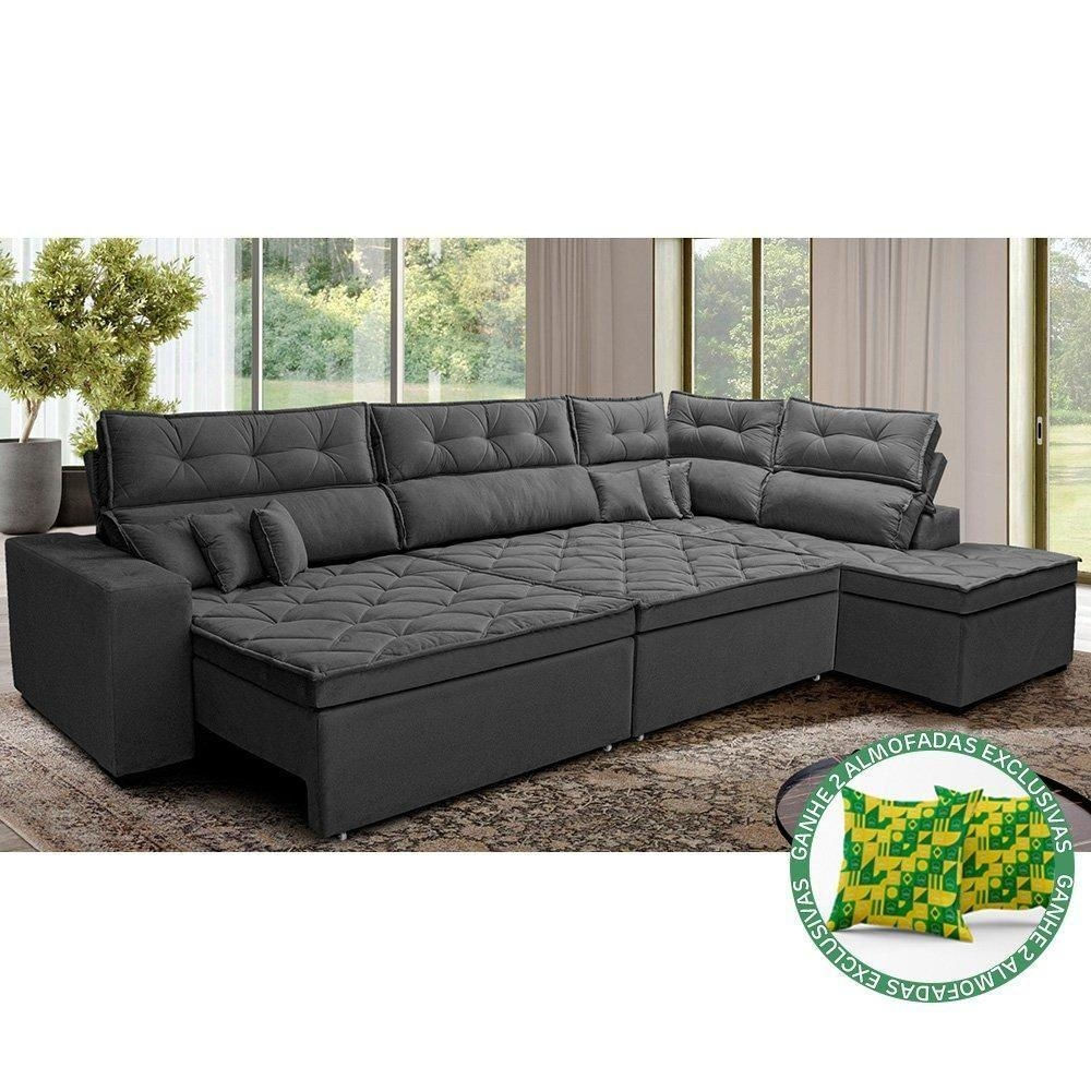 Sofá De Canto Retrátil E Reclinável Direito 3,00x2,36m Molas Cama Inbox Espanha Velusoft Cinza