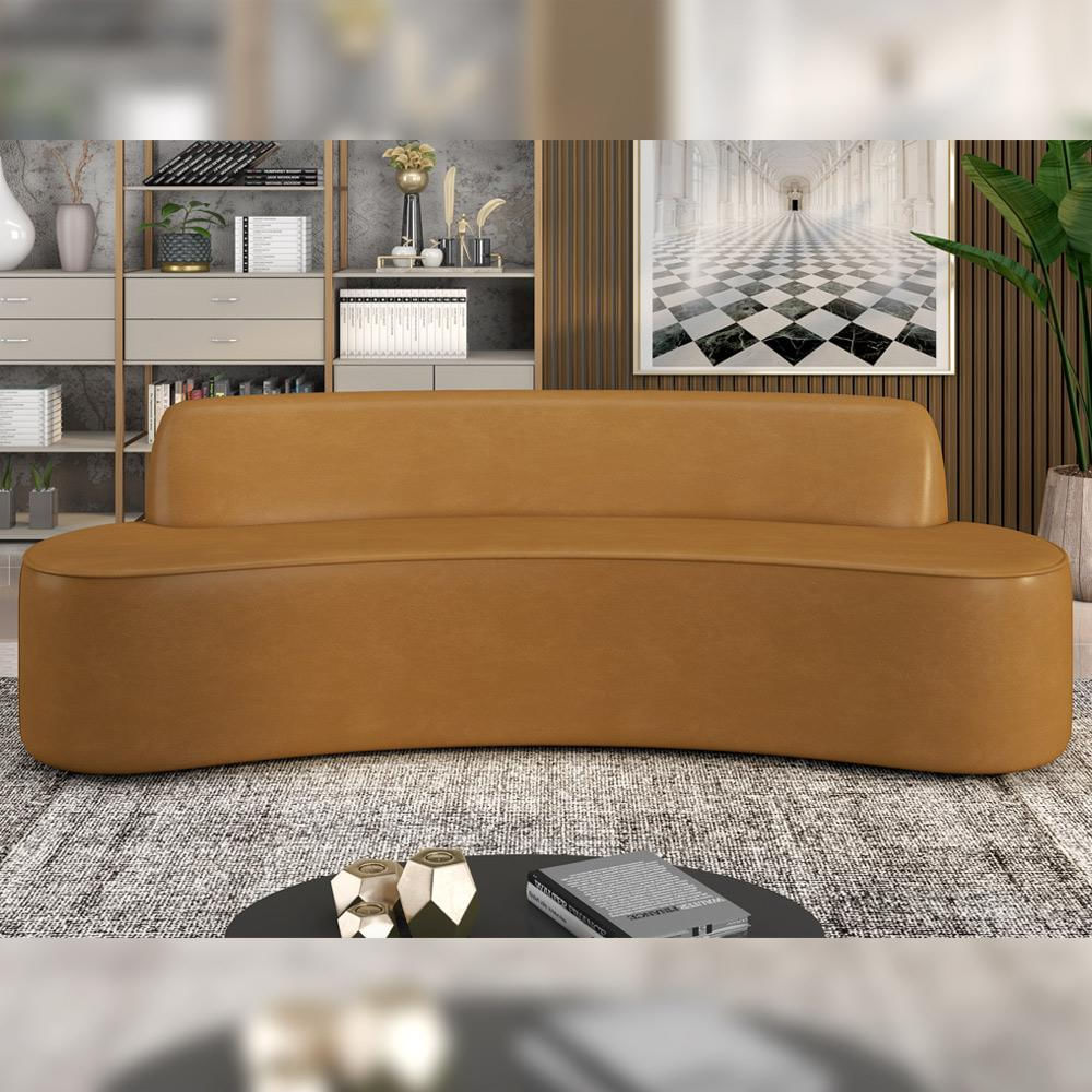 Sofá Decorativo 3 Lugares 180cm Bélgica Curvo PU Caramelo G15 - Gran Belo