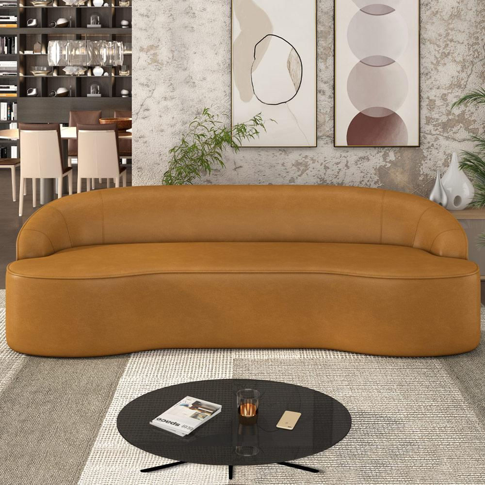 Sofá Decorativo 3 Lugares 210cm Joel Curvo com Encosto PU Caramelo G15 - Gran Belo