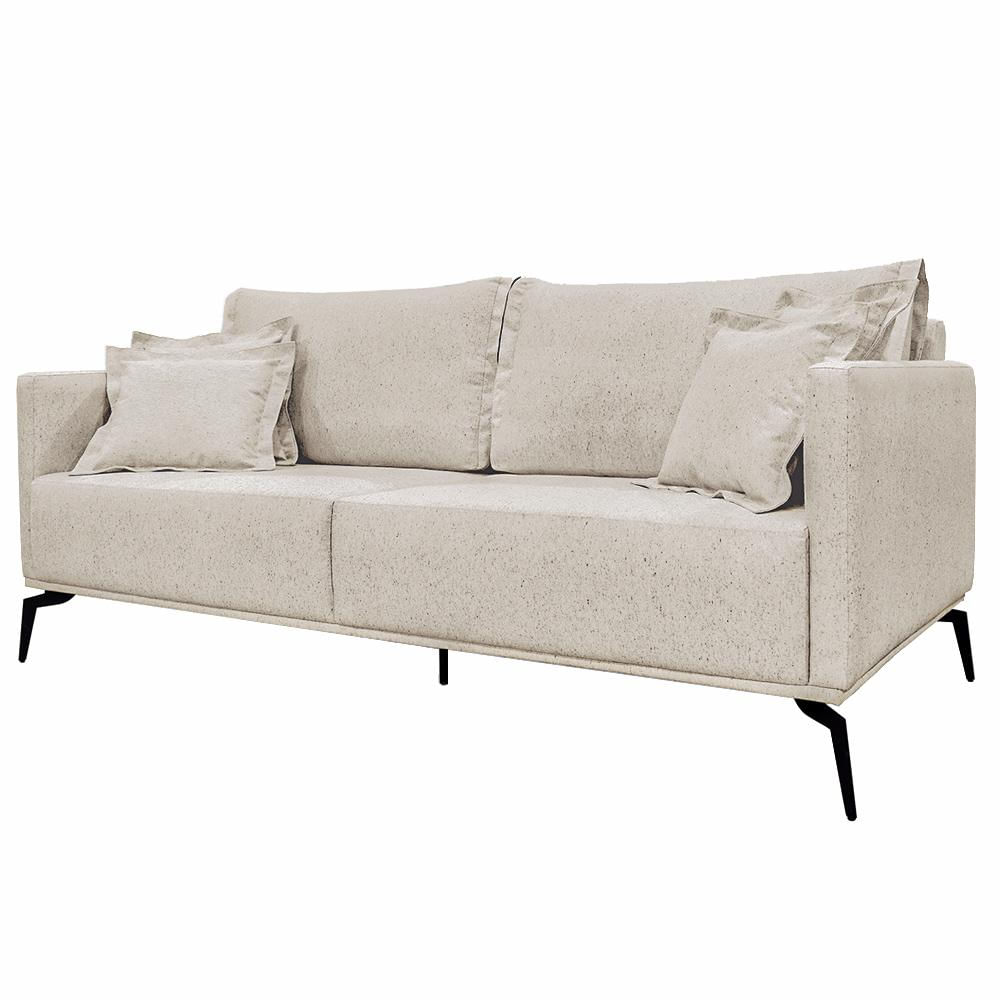 Sofá Decorativo 3 Lugares 220cm Pés em Aço Stagno Linho Off White Rústico - Gran Belo