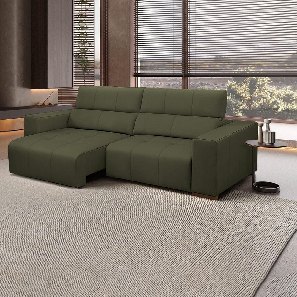 O Sofá Barbosa oferece o máximo em conforto e funcionalidade, com uma estrutura sólida de madeira de eucalipto tratada, reforçada com cantoneiras e chapas de MDF para garantir durabilidade. Seu grande diferencial está no encosto reclinável, que conta com espuma Hiper Soft D-28, proporcionando extremo conforto. O encosto pode ser ajustado em 7 estágios diferentes, graças a um sistema de catraca metálica, permitindo que você encontre a posição ideal para relaxar. O assento retrátil, montado em uma estrutura de tubo resistente, é composto por espuma D-26, molas espirais, molas ensacadas e percintas elásticas, assegurando firmeza e maciez ao mesmo tempo. Os braços acolchoados com espuma D-20 oferecem um suporte suave e confortável. Os pés em madeira, combinados com rodízios de silicone, facilitam a movimentação do sofá, sem abrir mão do design elegante. Revestido em couro, o Sofá Barbosa também se destaca pela sua sofisticação e facilidade de manutenção, tornando-o uma peça ideal para qualquer ambiente. Dimensões do Produto: