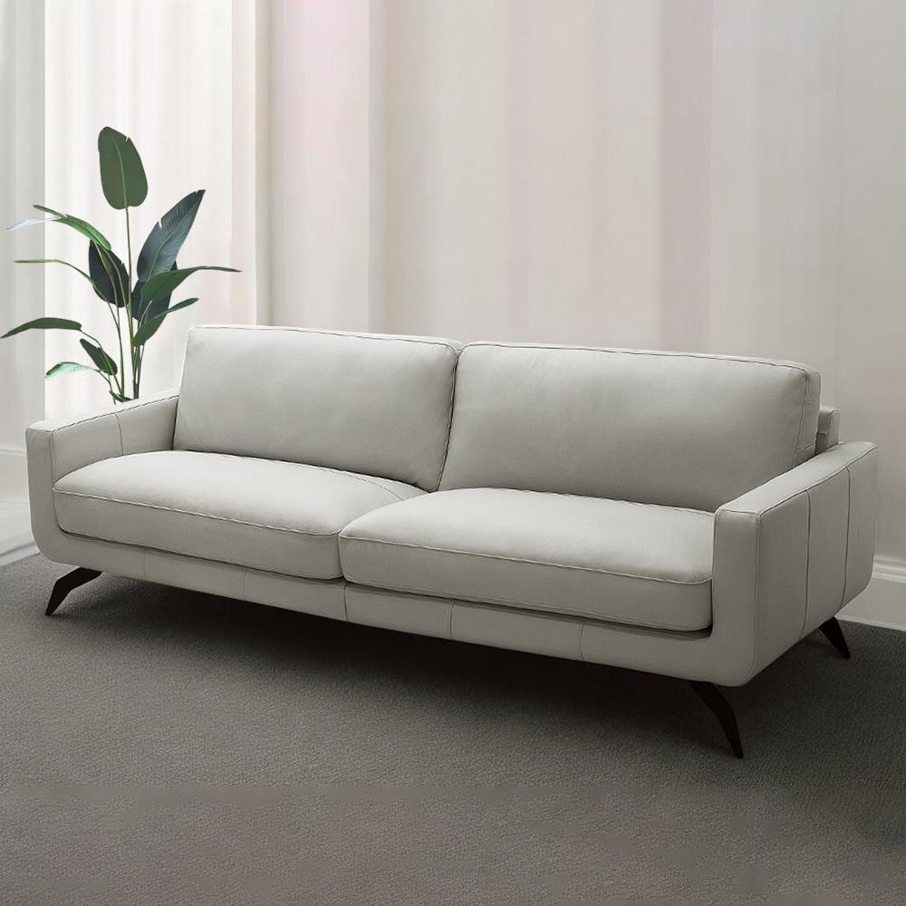 Sofá Decorativo Thalia 3 Lugares Sala de estar 210cm Pés em Aço Couro Off White G88 - Gran Belo