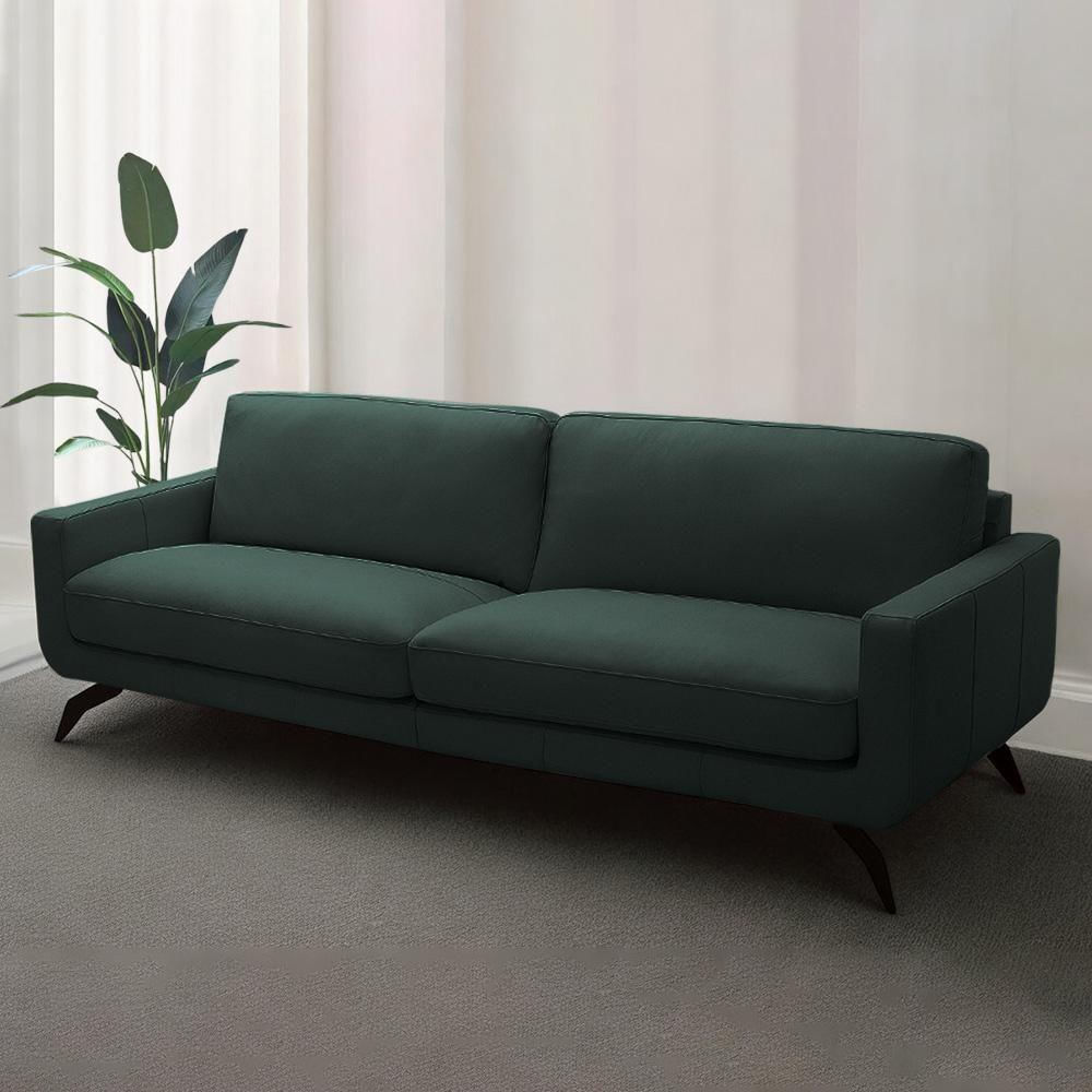 Sofá Decorativo Thalia 4 Lugares Sala De Estar 270cm Pés Em Aço Couro Verde Musgo G88 - Gran Belo