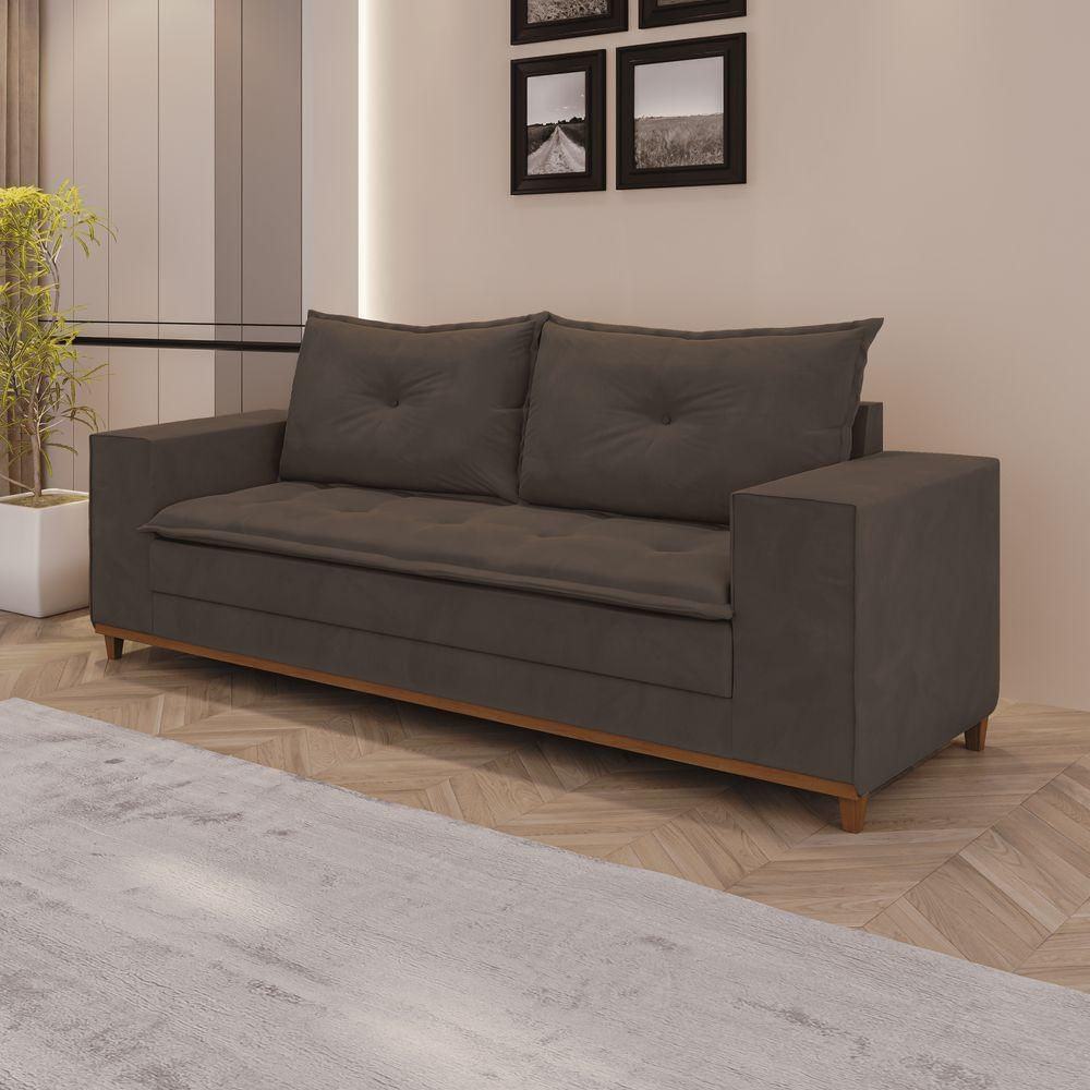 Sofá Dunas 5 Lugares 2,20m com molas – Veludo MarromO sofá Dunas é ideal para quem busca conforto, elegância e durabilidade para a sala de estar. Com 2,20m de largura e capacidade para 5 lugares, ele oferece excelente espaço para acomodar família e amigos.Seu revestimento em Veludo Marrom proporciona um visual sofisticado e agradável ao toque, combinando facilmente com diferentes estilos de decoração.Destaques do produtoDesign moderno e eleganteEstrutura resistente e durávelRevestimento em Veludo MarromIdeal para salas modernas e aconchegantesInformações do produtoModelo: DunasTipo: Sofá fixoLugares: 5Largura: 2,20mRevestimento: Veludo MarromEstrutura: Madeira de reflorestamentoAssento: Espuma de alta densidade com molasPés: Pés resistentesObservações importantesAs cores do produto podem apresentar pequenas variações dependendo da tela do dispositivo.As medidas são aproximadas e podem variar alguns centímetros.Produto enviado desmontado, acompanhado de manual para montagem. Sofá Dunas 5 Lugares 2,20m com molas – Veludo MarromO sofá Dunas é ideal para quem busca conforto, elegância e durabilidade para a sala de estar. Com 2,20m de largura e capacidade para 5 lugares, ele oferece excelente espaço para acomodar família e amigos.Seu revestimento em Veludo Marrom proporciona um visual sofisticado e agradável ao toque, combinando facilmente com diferentes estilos de decoração.Destaques do produtoDesign moderno e eleganteEstrutura resistente e durávelRevestimento em Veludo MarromIdeal para salas modernas e aconchegantesInformações do produtoModelo: DunasTipo: Sofá fixoLugares: 5Largura: 2,20mRevestimento: Veludo MarromEstrutura: Madeira de reflorestamentoAssento: Espuma de alta densidade com molasPés: Pés resistentesObservações importantesAs cores do produto podem apresentar pequenas variações dependendo da tela do dispositivo.As medidas são aproximadas e podem variar alguns centímetros.Produto enviado desmontado, acompanhado de manual para montagem.