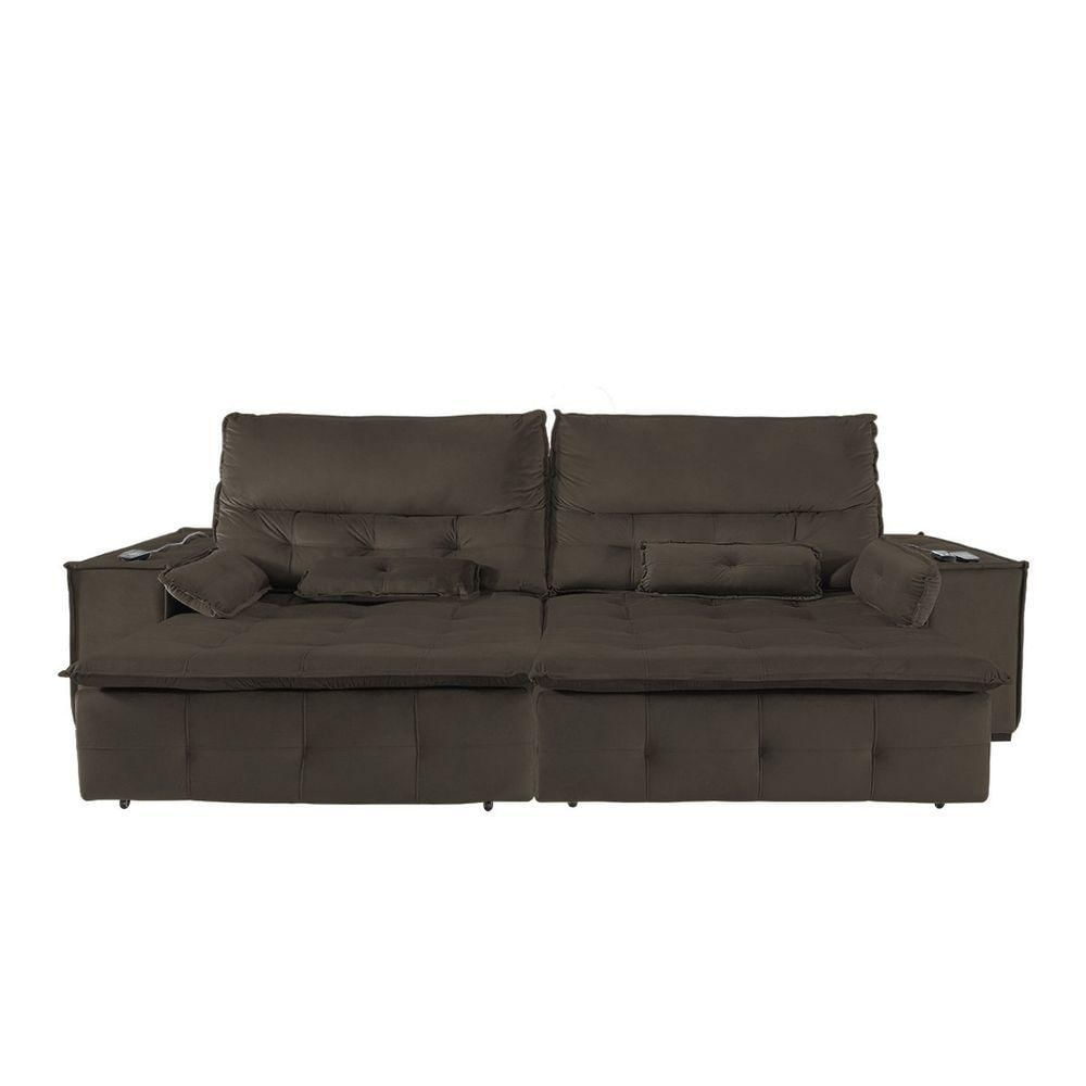 Sofá Fusion 3.00m Elétrico Com Usb E Vibro Massagem - Marrom